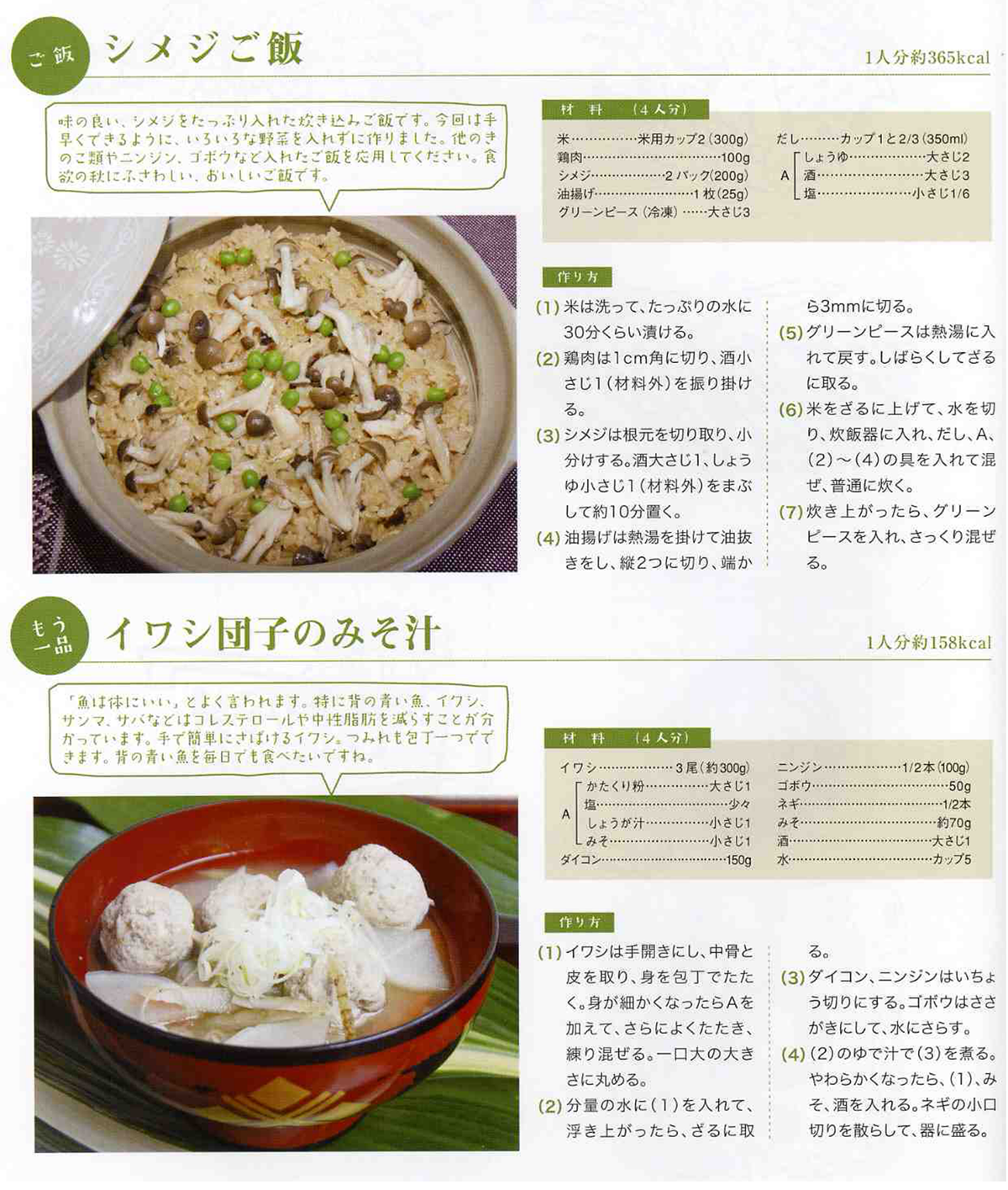 シメジご飯とイワシ団子のみそ汁