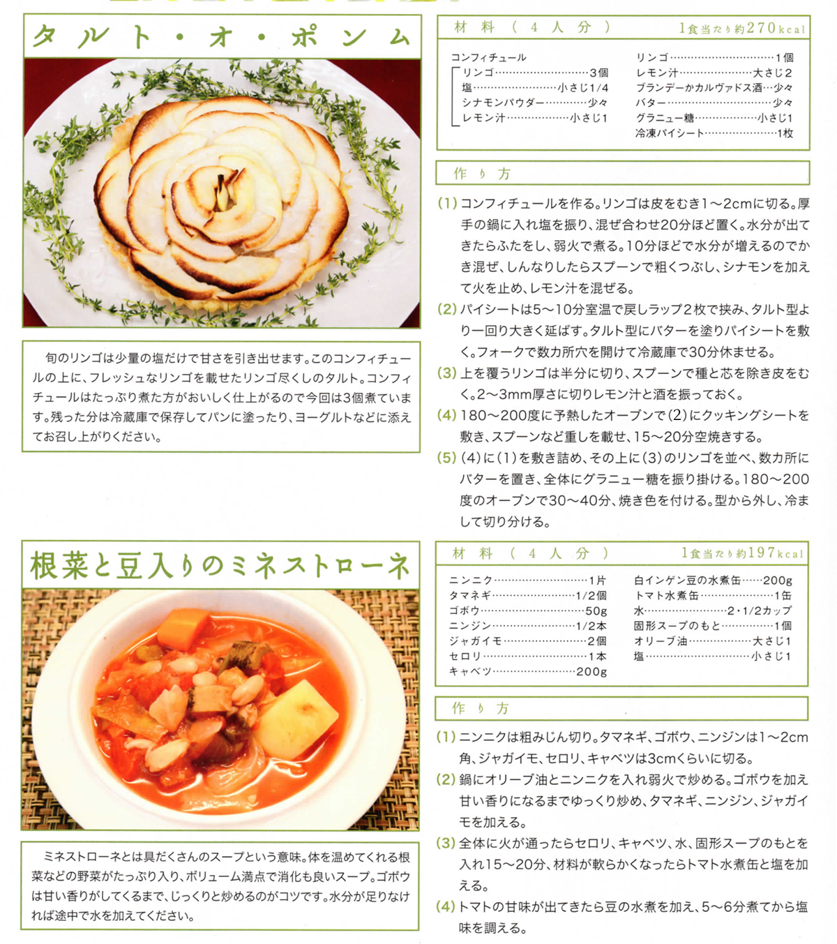タルト・オ・ポンムと根菜と豆入りのミネストローネ