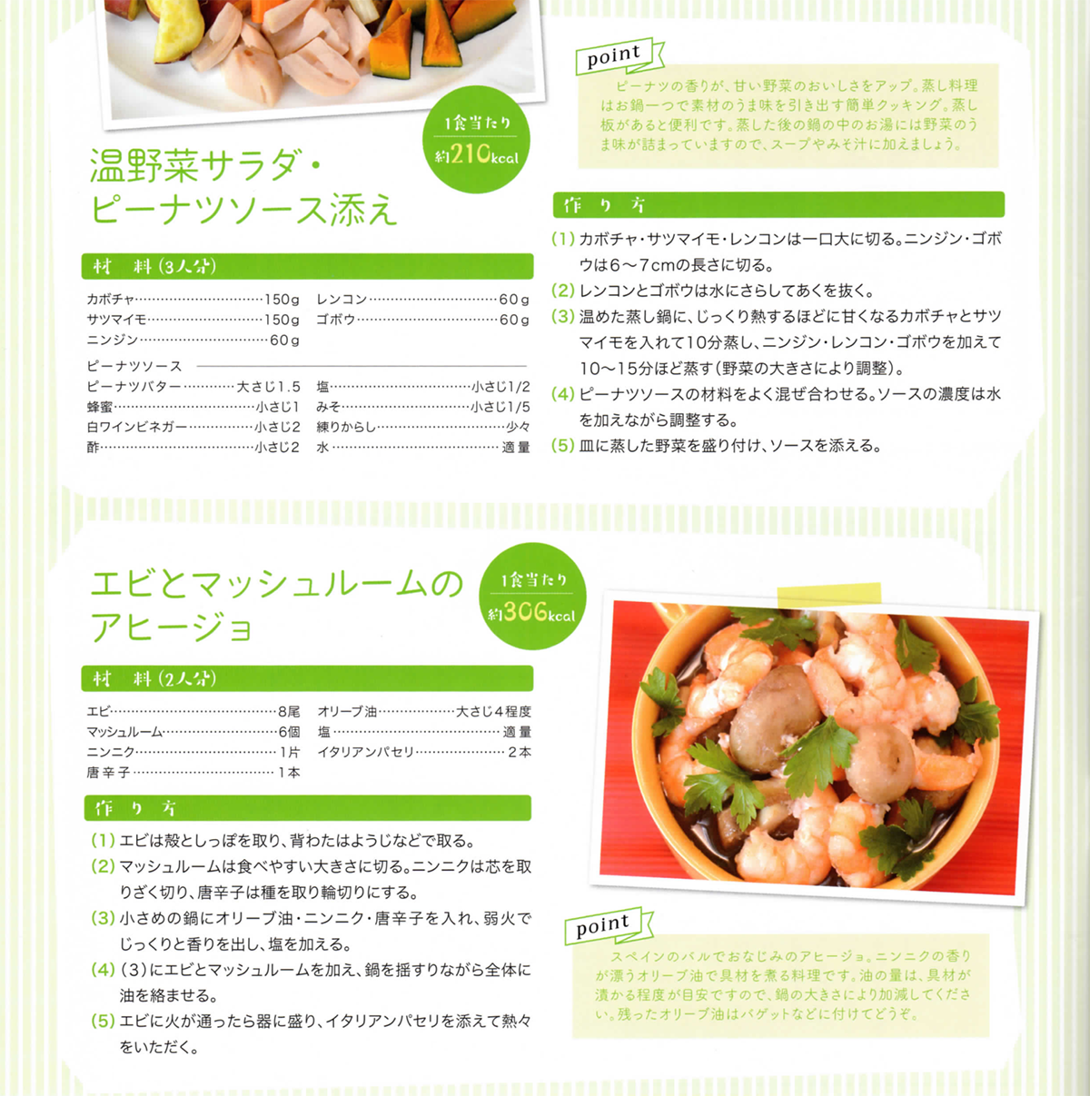 エビとマッシュルームのアヒージョと温野菜サラダ・ピーナツソース添え