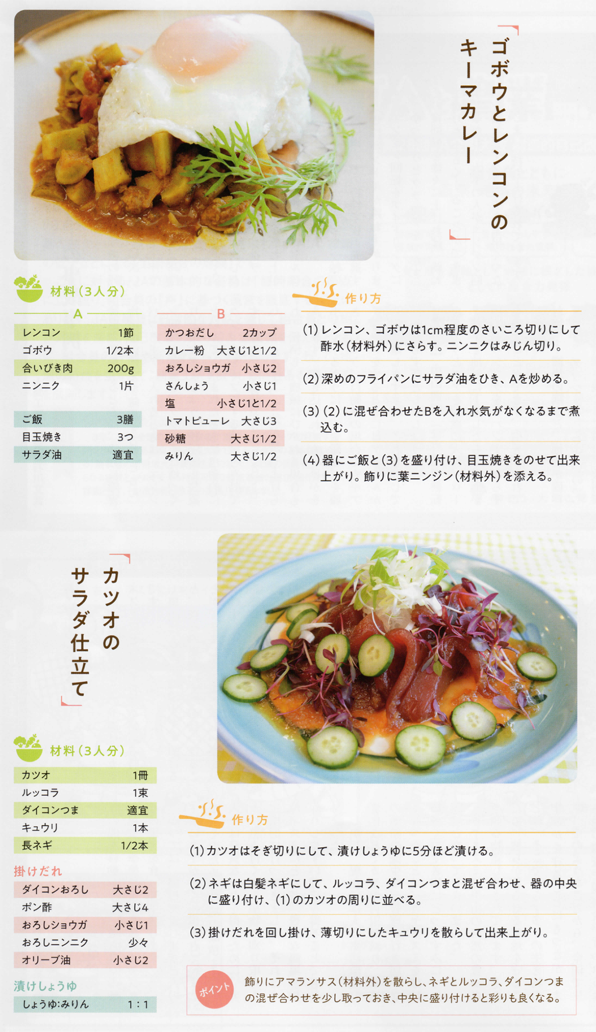 ゴボウとレンコンのキーマカレーとカツオのサラダ仕立て