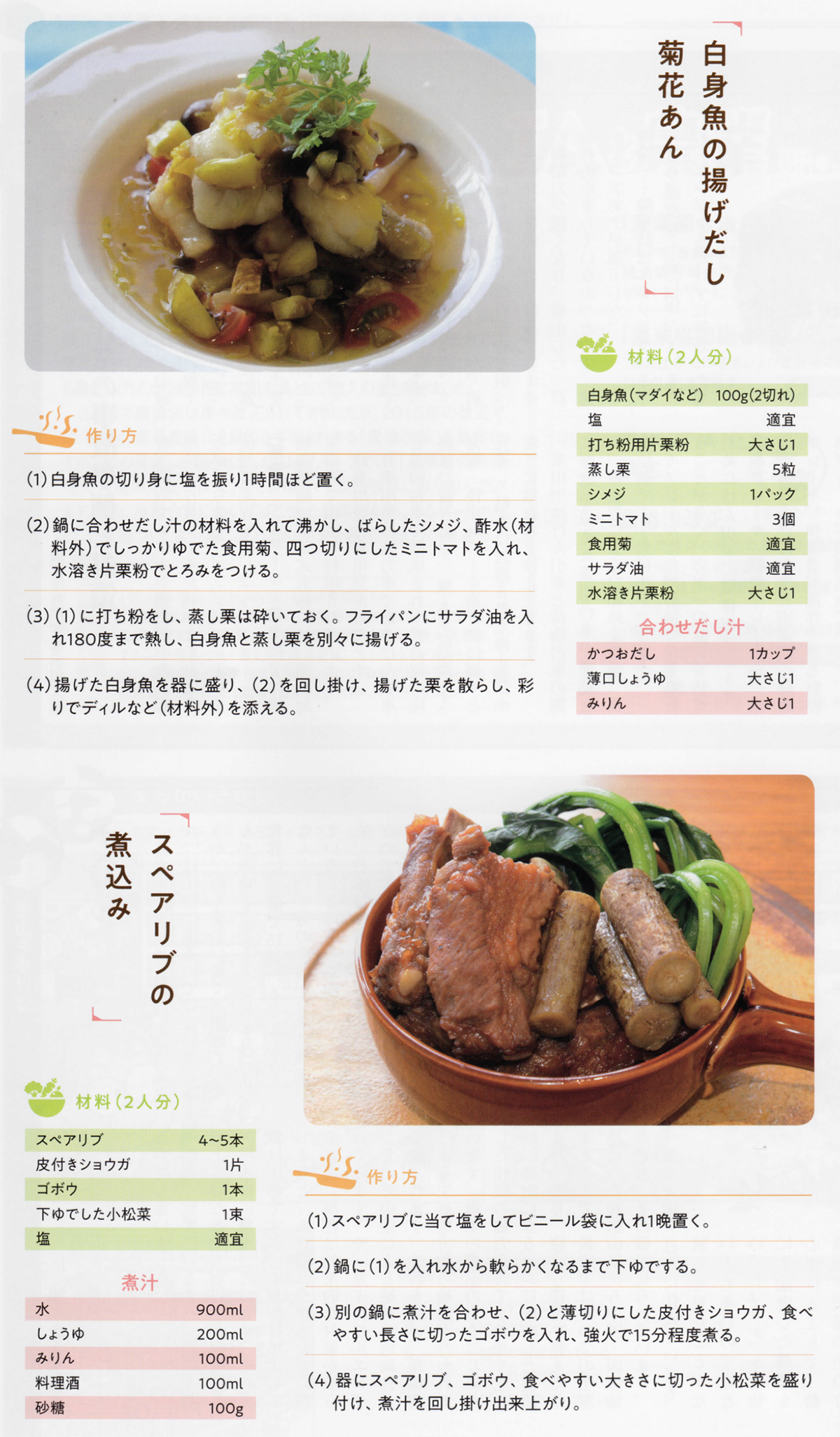 白身魚の揚げ出し菊花あんとスペアリブの煮込み