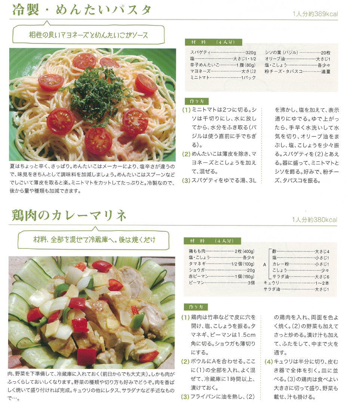 冷製・めんたいパスタと鶏肉のカレーマリネ