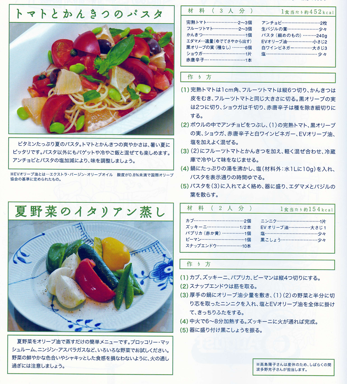 トマトとかんきつのパスタと夏野菜のイタリアン蒸し