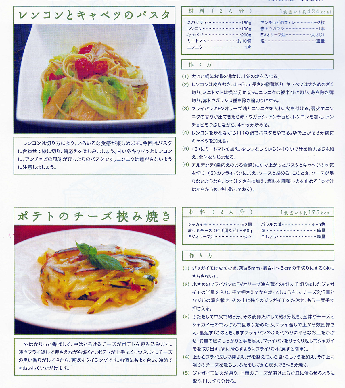レンコンとキャベツのパスタとポテトのチーズ挟み焼き