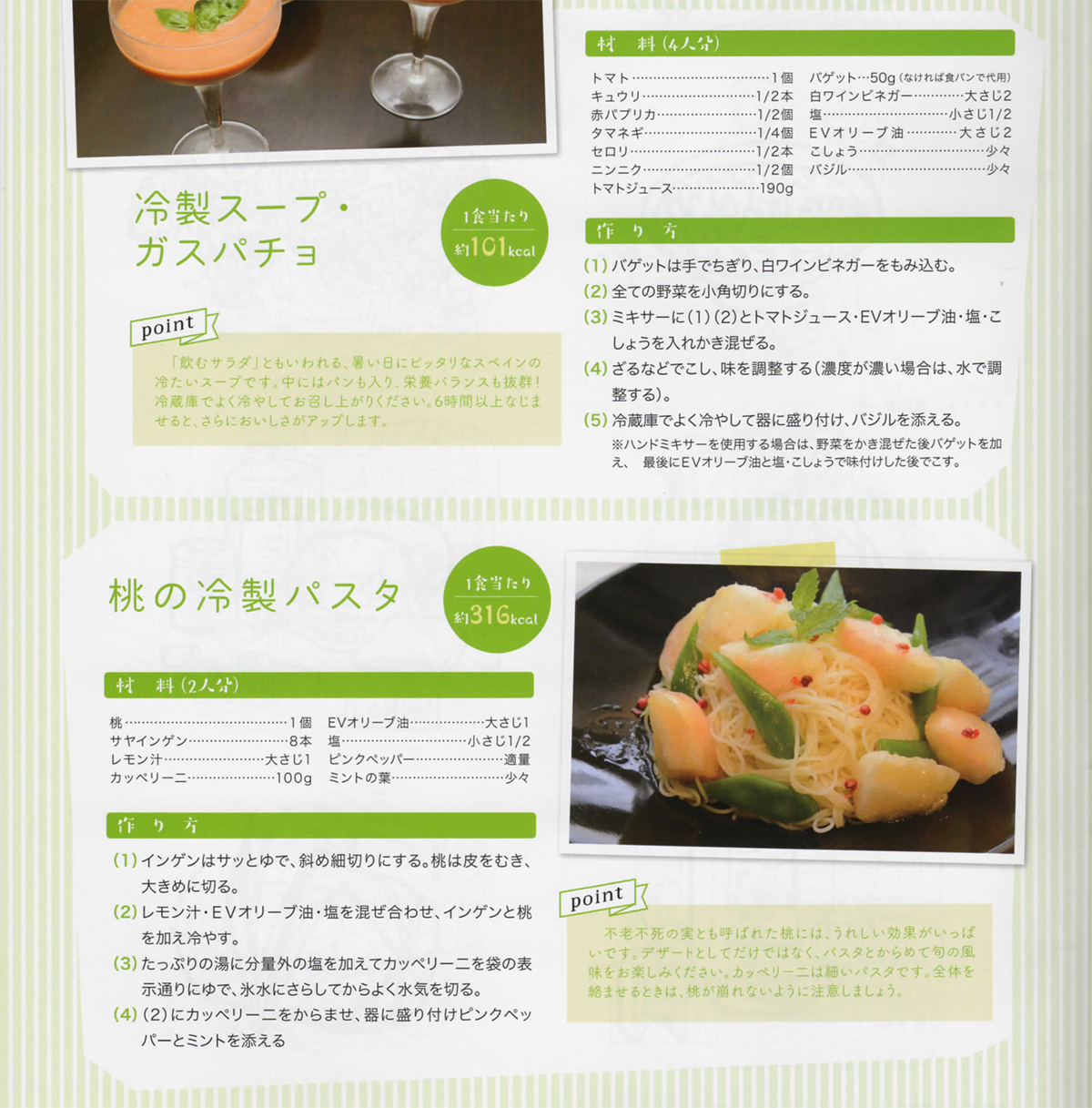 冷製スープ・ガスパテョと桃の冷製パスタ