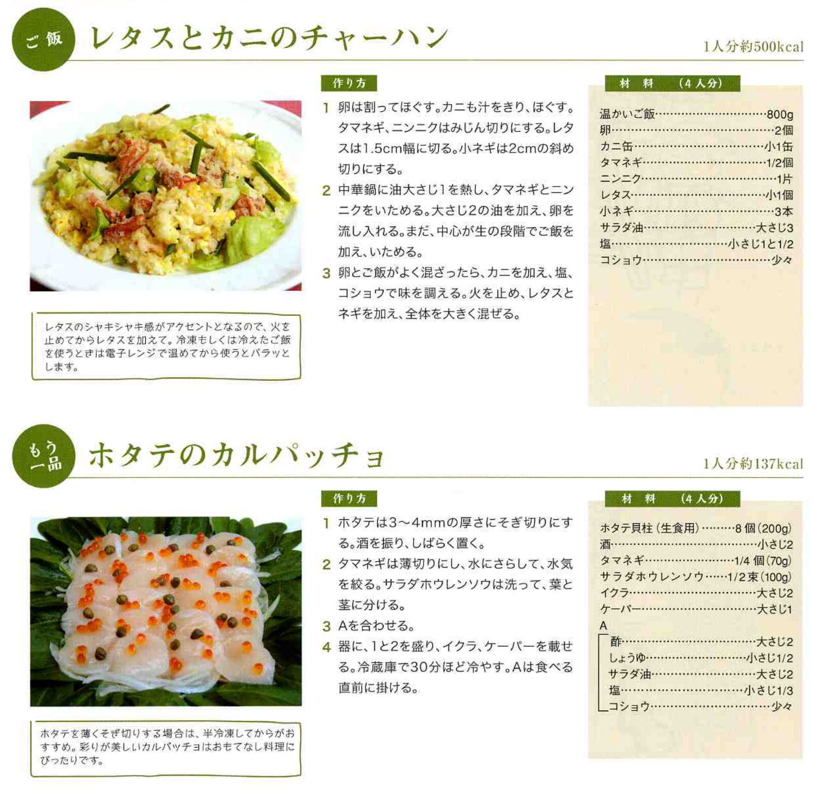 レタスとカニのチャーハンとホタテのカルパッチョ