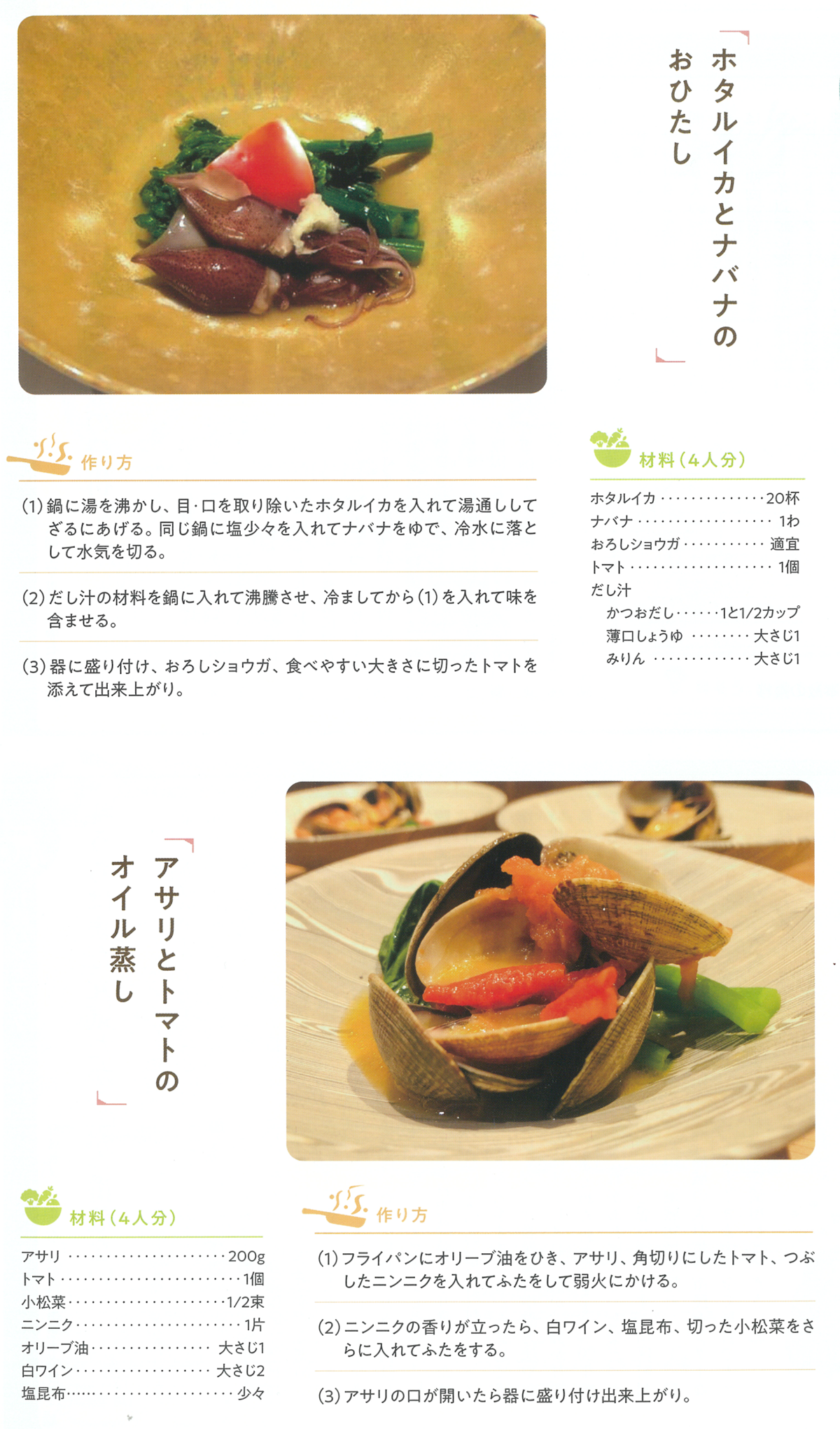 ホタルイカとナバナのおひたしとアサリとトマトのオイル蒸し
